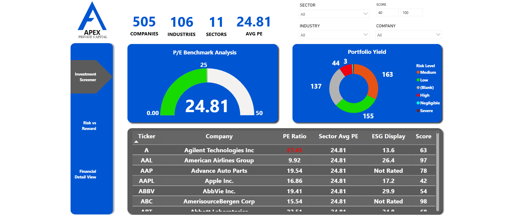 Apex Capital: Financial + ESG Decision Support System (Power BI + Python + MySQL)